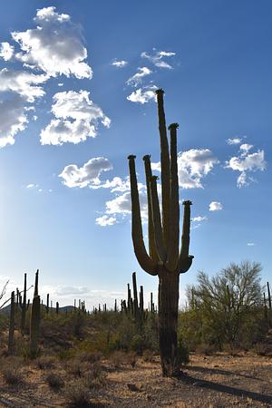 Saguaro standing tall just outside of the Saguaro National Monument. Clouds surrounding him like a badge of honor.