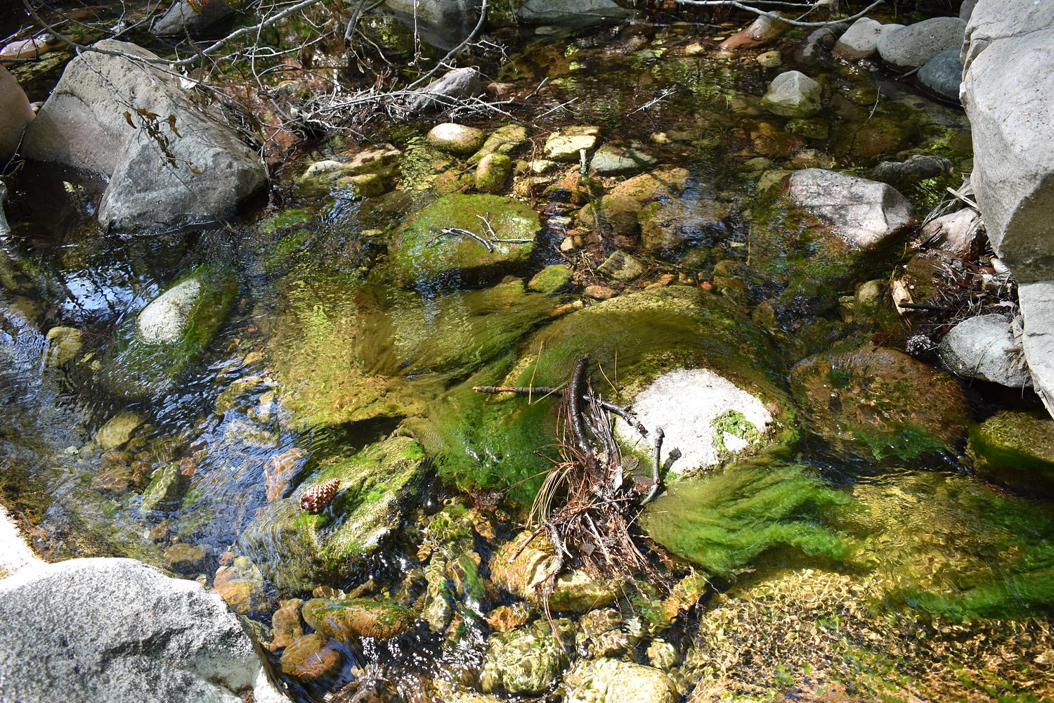 Mossy rocks in a creek bed.